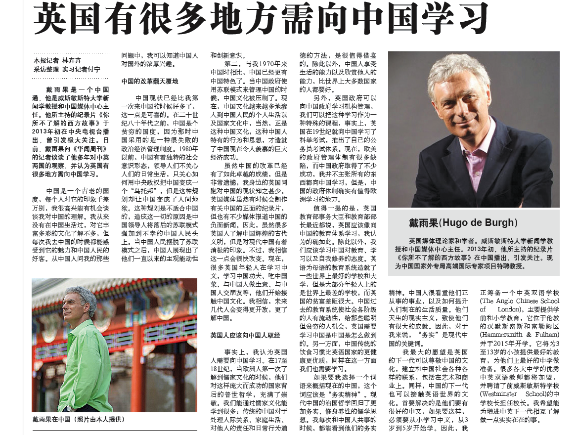 Hugo de Burgh – Chinese Weekly article Jan2014